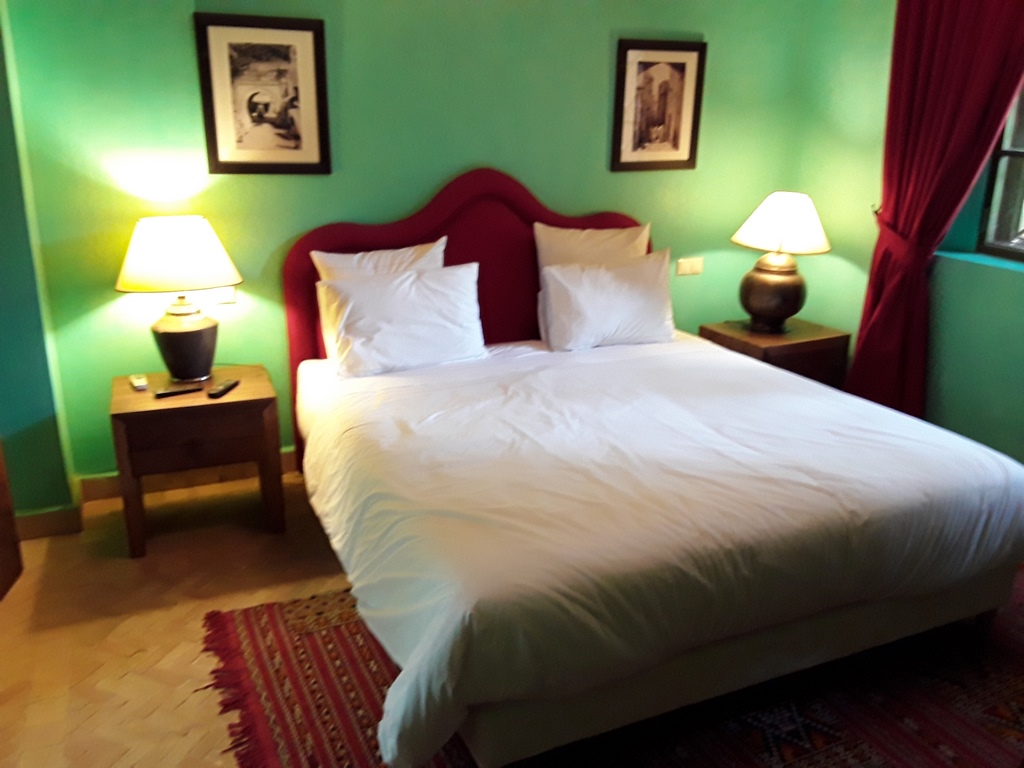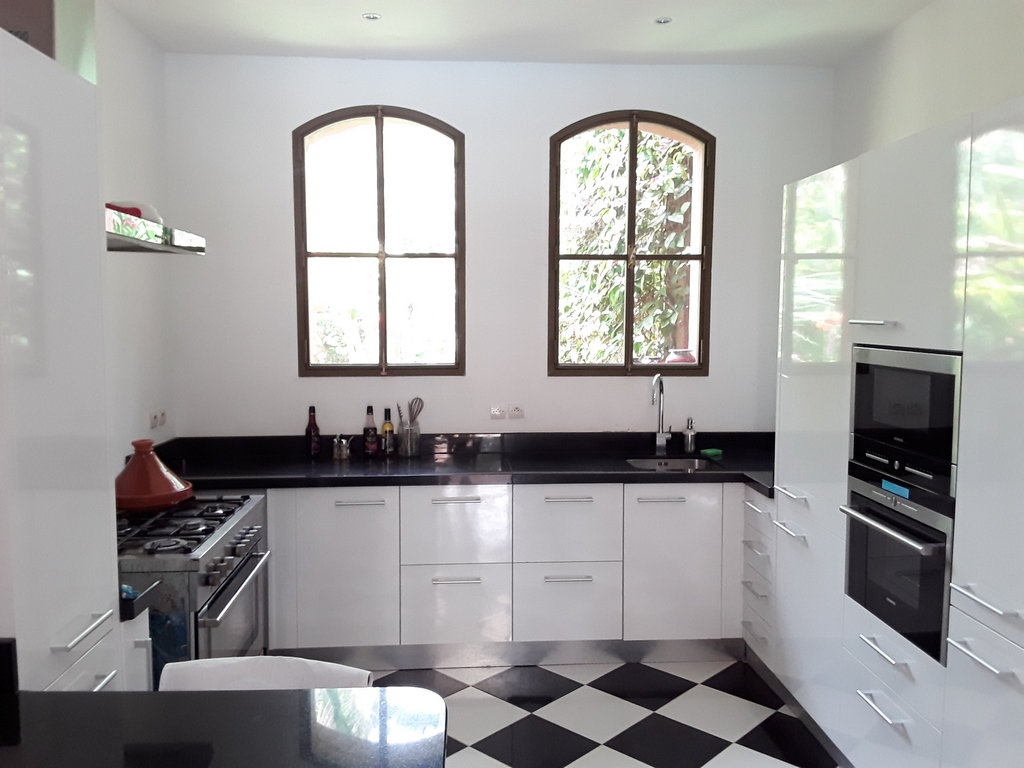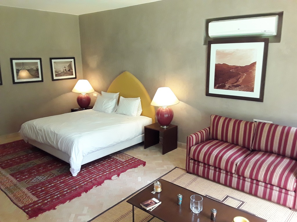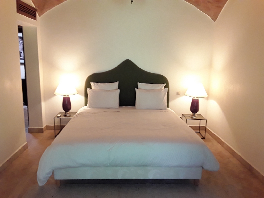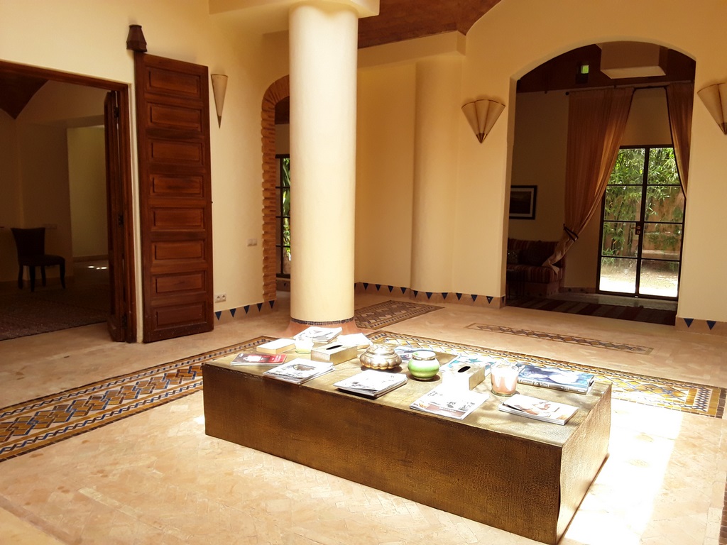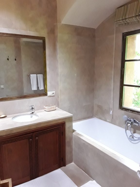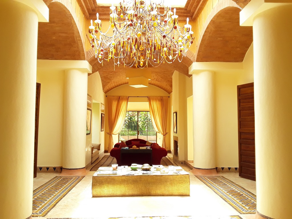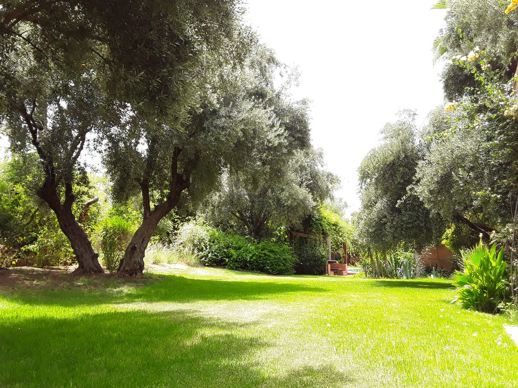 The villa of 600m² consists of an entrance that serves a Moroccan living room, a living room onto the fireplace opening onto the garden, a fully equipped kitchen, a dining, a di,ning room under glass roof overlooking the terrace and private heated pool and a outdoor lounge where you can enjoy your meals enjoying the mild climate in Marrakech…