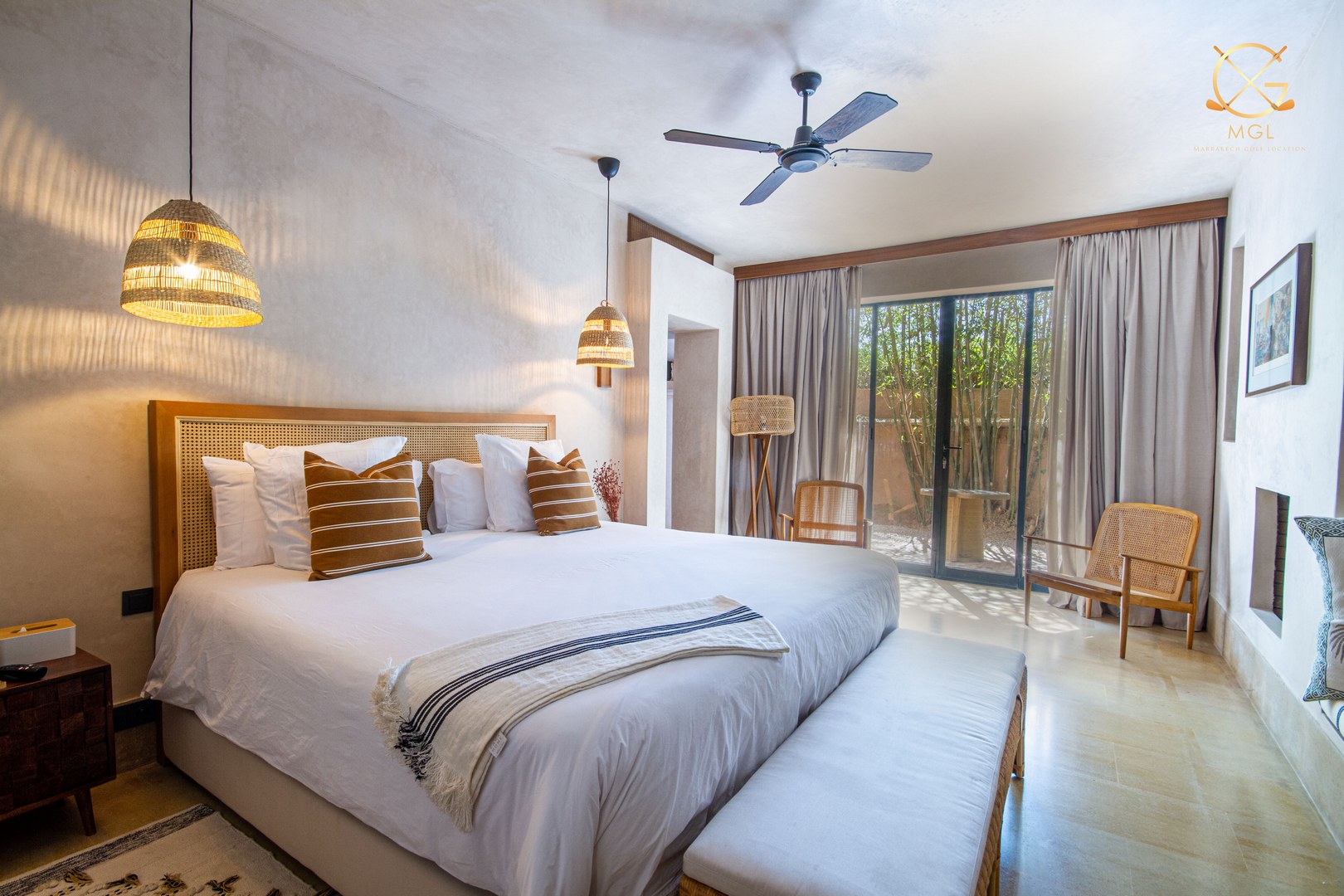Au coeur du domaine privé du golf d'Amelkis, à 15 minutes des souks de la médina et des activités de la nouvelle ville; venez séjourner dans cette magnifique villa entièrement rénovée dans l'esprit beldi chic.